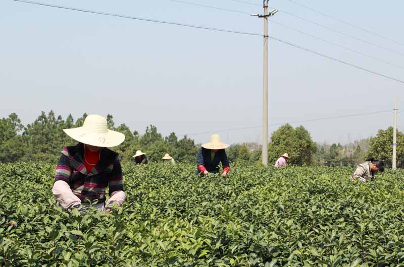 安徽农垦十字铺茶场受前期低温多雨的不利天气影响,今年春茶开园延迟至3月28日。清明节前后是生产名优茶的黄金时段,该场迅速成立春茶生产指挥部,动员一切力量确保名优茶生产,近日从邻近乡镇请来近千名采工,每天鲜叶下树率达2000多公斤,截止