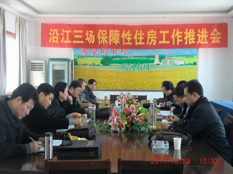 会议听取了茶区四场和沿江三场保障房建设进展情况的汇报,通报了危房改造项目工程进度,交流了各自生产经营、产业化发展、垦地合作等方面的工作情况,就当前及下一阶段保障房建设工作作了部署。会议认为,2011年,各农茶场精神面貌好、工作有内容、新增亮点多、发展前景好,坚持以经济建设为中心,积极创造条件、克服困难、改革开放,垦地合作成果不断扩大,促进了农垦企业加快发展。会议要求,各农茶场要高度重视并切实抓好民生工程建设,把保障房建设作为头号民生工程,在保证质量安全的前提下,加快进度、保证工期,确保按期完成工程建设任务,把好事办好。