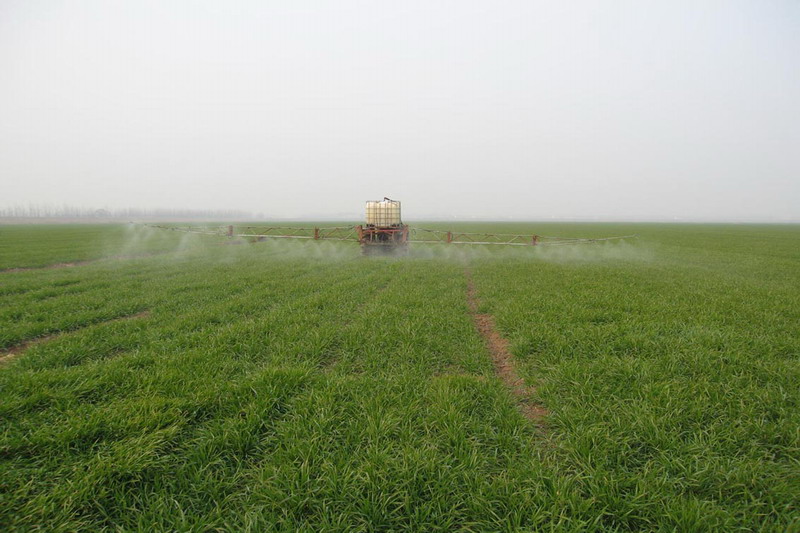 图为农场正抓住晴好天气进行施药化控(姚昕)