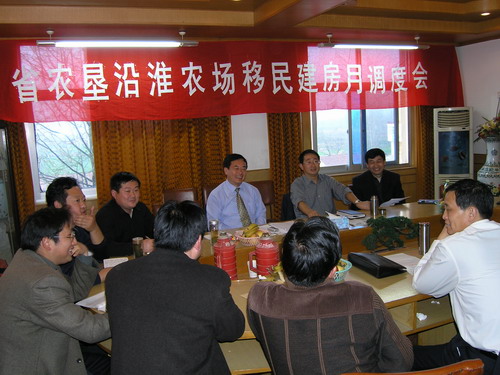 3月28日,省农垦集团公司副总经理刘超在潘村湖农场主持召开沿淮农场移民建房月调度会。寿西湖、方邱湖、焦岗湖、正阳关、潘村湖五个农场的主管领导和相关部门负责同志及集团公司工贸处领导参加了会议。
