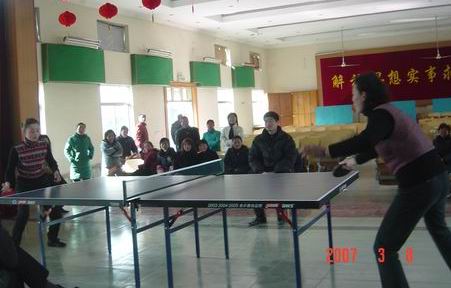 多年来,大圹圩农场工会坚持在每年的“三八”妇女节期间,举办形式多样、健康有益的群众文体娱乐活动丰富女职工的节日生活,促进农场精神文明建设。这次举办的女子乒乓球单打、双打比赛活动得到了各基层工会的积极参与。根据活动安排,自3月6日开始,各赛区就开始了热火朝天的参赛选手选拔赛。3月8日,三个赛区的优胜者集中在场部大礼堂展开了女子乒乓球双打、单打两个项目前三名的角逐。比赛场面紧张、激烈,引吸了不少人前来观看。经过几轮较量,两个项目前三名各有得主。场工会主席杨朝幸到场观看比赛,并为获奖者和参赛者颁发了奖品和纪念品。
