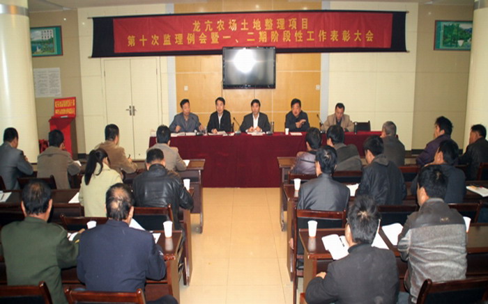 10月27日下午,龙亢农场项目建管处召开土地整理项目第十次监理例会暨一、二期阶段性工作表彰大会,系统总结该项目开工以来的各项工作,部署项目工程的质量管理和下一阶段施工工作,表彰项目建设阶段性工作中涌现出的优秀施工单位和优秀项目管理人员。皖垦食品集团董事长、项目建管处主任王国福,党委副书记张建民,副总经理、项目建管处副主任程希文,省农垦土地分局派员出席会议。