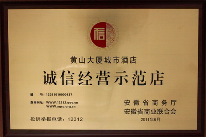 近年来,黄山大厦城市酒店全体员工与时俱进,开拓创新,“以情服务、诚信待客”的经营服务理念广受社会赞誉,获此殊荣是对该酒店诚信经营的充分肯定。酒店董事长、总经理王健表示,将继续坚持质量为本,诚信经营,为广大消费者提供更周到更便捷的服务。( 袁春燕)