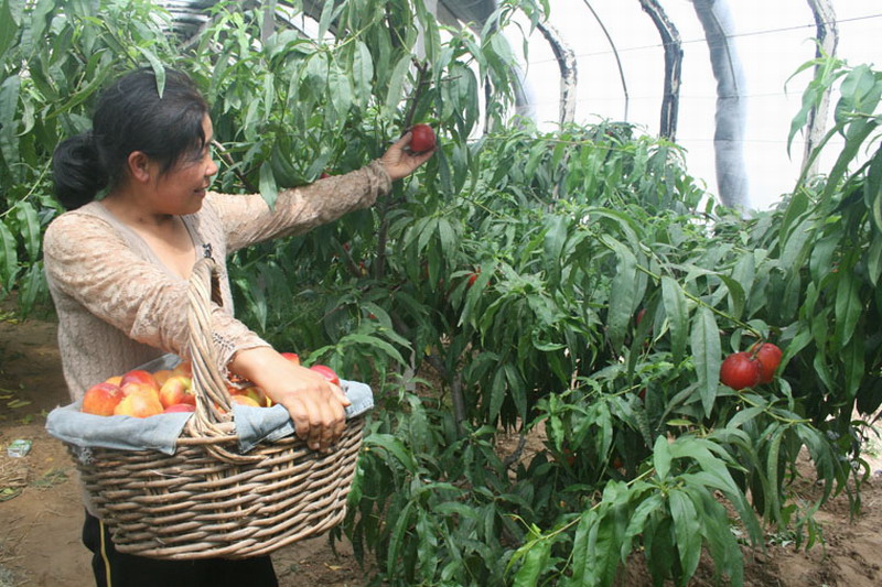 进入5月份以来,砀山果园场职工身份田设施大棚内一派繁忙景象,采摘水果的职工川流不息,购买水果的客商络绎不绝。“由于前几年大棚经济效益好,今年职工管理更加精细,大棚生产的金太阳杏、油桃个大色艳,深受客商青睐,每斤要比去年多卖1元多,一个棚比去年增效几千元。”正在现场指导的一分场技术员孟凡富告诉笔者。