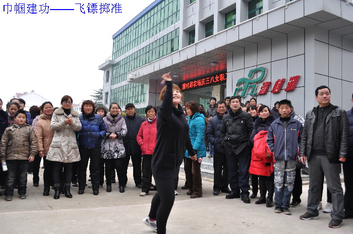为迎接即将到来的国际劳动妇女节,活跃广大女职工的业余文化精神生活,3月6日,安徽农垦潘村湖农场工会和社区管委会联合举办了女职工趣味运动会。来自场属各单位的160多名女职工参加了集体跳绳、两人三足走、比划猜词、夹玻璃球、飞镖掷准等多项趣味游艺比赛活动。(杨登红)