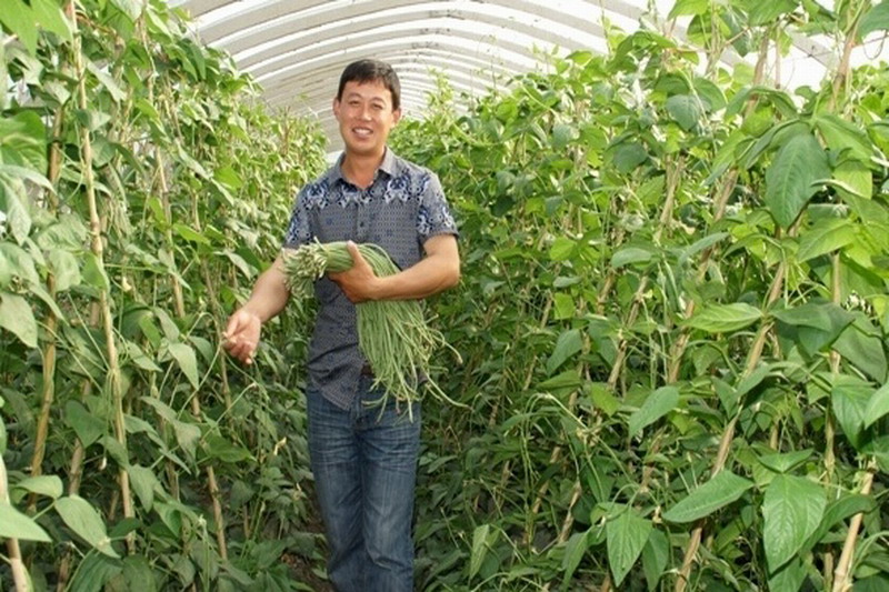 连日来,安徽农垦龙亢农场五分场职工张宏凯、柏树棵种植的黑眉豆角、精品辣椒等一系列无公害大棚蔬菜紧俏上市。黑眉豆角亩产可达2500