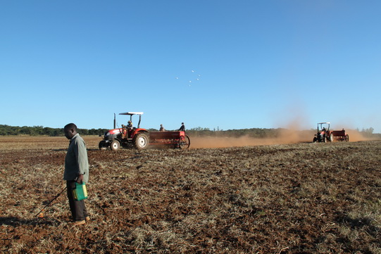 当前,皖津公司全力以赴抓好今年小麦种植工作,从5月10日开始,一线人员全部到位,生产资料陆续采购进场,在加快在地作物收割的同时,开足马力进行耕耙播种,全面打响小麦播种攻坚战。为加快工作进度,皖津公司打破当地按时上下班的工作习惯,做到人停机不息,人息活不断,每天从早晨六点机械保养到晚上天黑收工,所有工人忙在地、吃在地,轮班换岗进行耕耙整地、施肥播种、焚草捡石,将麦播工作推向高潮。截止5月17日,两个农场共完成整地面积430公顷,播种面积170公顷。