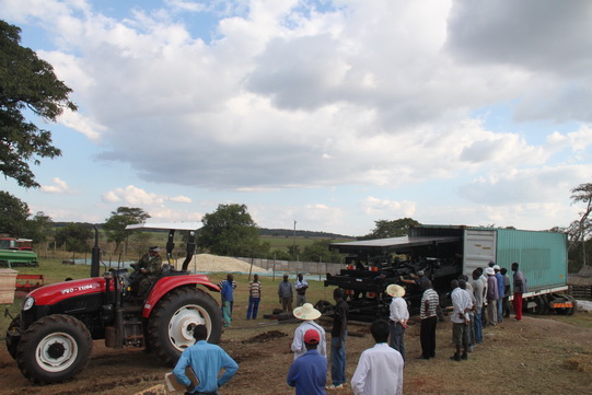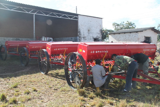 安装调试。刚刚完成卸货任务,皖津公司又抓紧组织对农机进行安装和磨合调试。首批运抵津巴布韦的农机具有拖拉机、拖车、播种机、旋播机、马铃薯播种机及收获机、玉米播种机、重轻耙、旋耕机、深松机、打药机等110多台(套),以及喷灌机、电机水泵等其他物资,公司中方和津方员工不辞辛苦,团结协作,全面完成了安装调试的繁重任务。