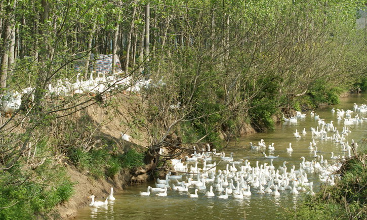 眼下,走进该场农业管理区,在成片的树林里、沟渠边,可见一簇簇白色的鹅群与春天的绿树、青苗、黄花构成一道独特的风景线。据农场率先示范发展林地养殖业的职工吴延正介绍,去年,他家在进行林地养殖草鸡的同时,还把握市场上规模养殖了肉鹅12000余只,一年获纯利近20万元。今年他又分批进栏6批鹅苗,现存栏量已达12500只,首批2400只成鹅销售进帐近5万元。他说,农场现有集中成片的林地,养殖条件好,加上自己多年搞林下养殖,积累了一定的科学养殖经验,鹅苗成活率较高,长得也快,一批鹅苗两个半月就能长成出售。按当前市场行情,他存栏的肉鹅如顺利养成销售出去,获利可超过20万元。(夏庆芳)