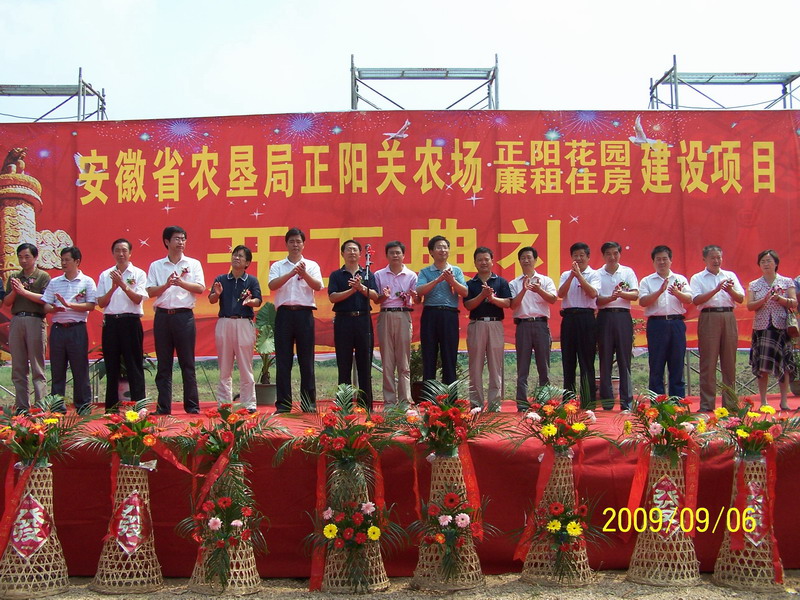 在省直有关部门和地方有关单位和部门的大力支持下,经过几个月的努力, 安徽农垦2009年廉租房试点项目于国庆前全面开工建设。安徽农垦2009年廉租住房总计2700套,计划总投资10868万元,其中:中央投资5394.7万元,省级财政投资2697.36万元,农垦自筹资金2775.94万元。具体分布在普济农场300套,华阳河农场200套,宣郎广茶业总公司300套,龙亢农场300套,砀山果园场150套,寿西湖农场123套,水家湖农场475套,正阳关农场200套,焦岗湖农场652套。该项目前期工作和开工建设情况总体良好,在前一段工作中,一是抓规划、设计、评审,二是抓招投标,三是抓开工。目前各项工作正在按计划推进。