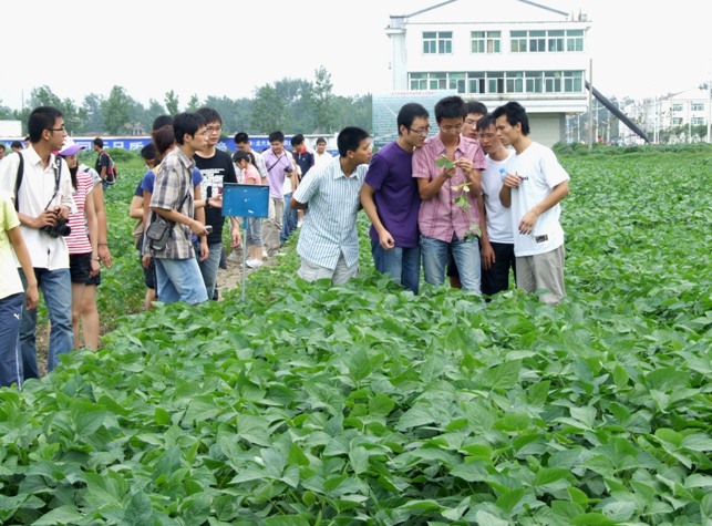 观摩团分别参观了龙亢农场现代农业高科技示范园、农田大豆长势及病虫害防治情况,听取了龙亢农场现代农业建设和作物植保工作情况介绍,与农场农科所的技术人员重点交流了小麦、大豆、水稻等作物主要病虫草害的防治措施和技术要领。