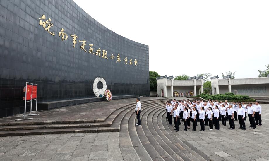 在泾县县委党校,授课老师以《传承红色基因 弘扬新四军精神》为主题,讲授了新四军的由来、新四军的光辉历史和新四军精神。大家共同瞻仰了皖南事变烈士陵园、新四军军部旧址和王稼祥故居,深入学习了革命先烈的丰功伟绩和历史贡献。在皖南事变烈士陵园前,王西享带领大家向皖南事变烈士纪念碑敬献了花篮,并在皖南事变烈士陵园广场带领大家重温入党誓词。
