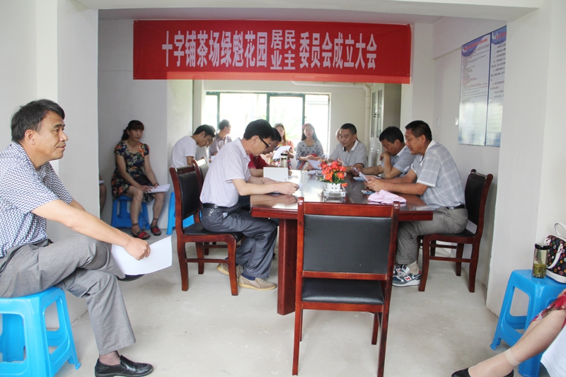 7月20日,十字铺茶场“绿魁花园”职工小区选举产生了居民委员会和业主委员会,工会主席徐和平及筹备组成员、候选人、居民代表参会选举,十字镇政府相关部门领导到场指导。