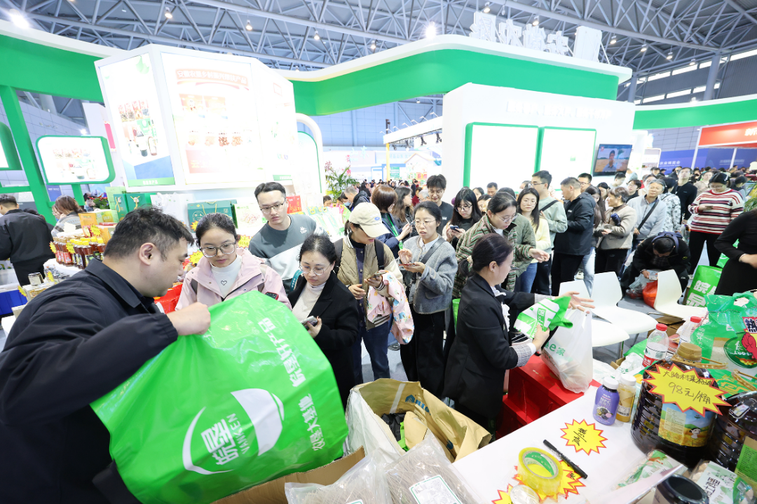“品味之选”展区人流不断、热闹非凡。高高搭起的展柜搭配谷物实物造型装饰,各类农特产品琳琅满目。广大参观者异口同声“农产品就选农垦的!”。现场固定直播间与流动直播团队联动,实现“线下体验、线上下单”,扫码关注赠送定制礼品的活动更聚集了超高人气。