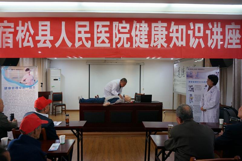 县医院体检中心专家王洪艳在讲座上以“关注生命 重视健康”为主题,讲解了如何预防慢性病,并从合理膳食、适量运动、保持愉快、平衡心态等方面,向老年朋友们传授了怎样吃、怎样运动才能更有益于身体健康。该院内科、ICU主任沈华东采取讲解与演示相结合的方式,指导老年人在遇到紧急情况时如何自救和急救他人。现场老年朋友们还就自身健康问题与两位专家进行了咨询解答互动。