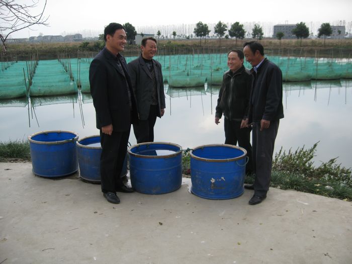 今年恰逢土地复垦整理项目落户养殖场,农场结合项目对水产养殖场塘口集中区域的水电路进行改造,同时对鱼塘进行清淤,及时开沟、埋设涵管,共计投入资金100多万元。流转塘口,及时“腾笼换鸟”,引进场外小能人先来示范。农场积极响应安徽农垦集团大力发展高效农业的号召,抓住农业改革机遇,将闲置塘口面积集中起来,向场外能人发包,建立100亩网箱养鳝示范片,以黄鳝为主打品种推广高效水产养殖,一面继续引进周边农村能人进场入塘,一面引导本场农工积极跟进。安徽省望江县赛口镇金堤村专业户汪江生今年把村里20多个农民带到农场水产养殖场,集体承包了300多亩塘口,发展网箱养鳝,同时,盘活水面资源,发展鱼鳝立体养殖,发挥循环经济的倍增效应。农场还注重以阳光工程为平台,邀请科研院校专家对养殖户进行高起点培训,并成立专业合作社,统一技术、防疫和销售,让养殖户抱团发展,共享资源与信息,走产供销一体化的路子。目前合作社成员已达61户。