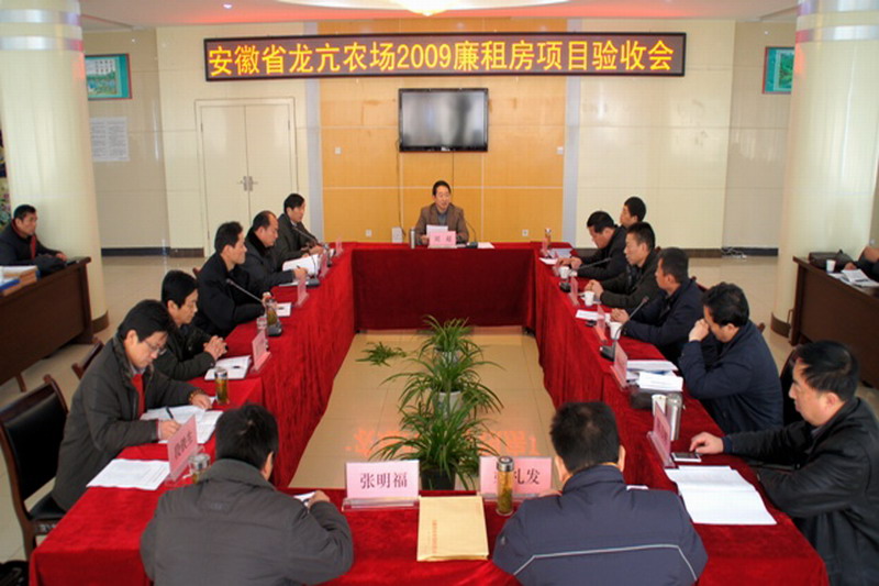 12月28日上午,省农垦集团副总经理刘超主持召开龙亢农场2009年廉租房项目验收会。集团公司办公室、投资发展部、社会事业部、监察室、审计室、现代农业工程设计研究院和怀远县住建局、监理施工单位负责人,皖垦食品集团董事长王国福、龙亢农场场长杨俊宇及特邀职工代表参加了验收活动。