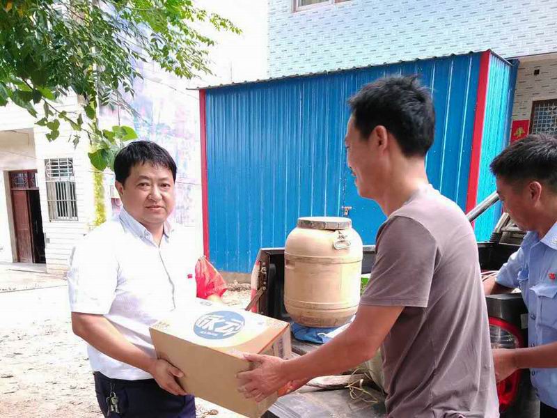 7月14日上午,华阳河三场居民蔡琪将购买的矿泉水、西瓜、肉食及饮料等送上江堤,慰问三场责任段防汛人员,在这骄阳似火、酷暑难耐的炎夏,送来了阵阵“清凉”。