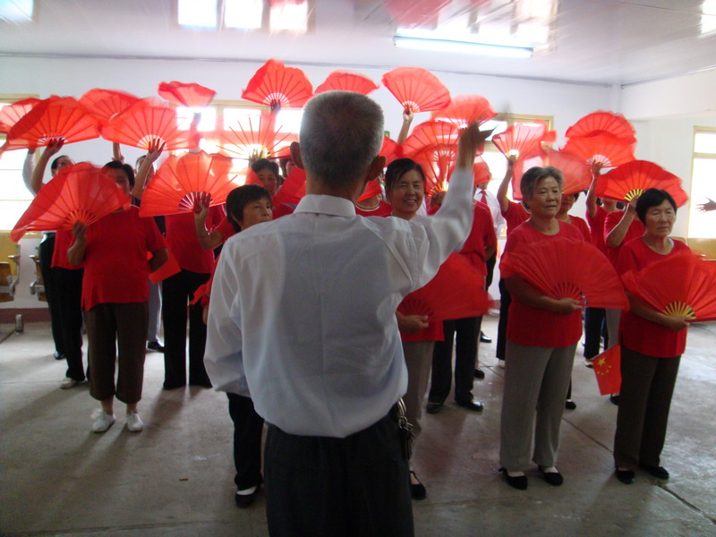 9月25日,大圹圩农场退休人员活动中心内歌声嘹亮,由农场退休职工组成的“夕阳红”歌唱队和舞蹈队正紧张地进行彩排,准备参加由场工会组织的庆祝建国60周年“红歌演唱”文艺晚会。