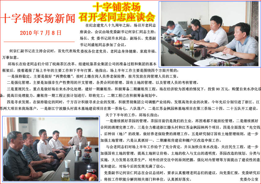十字铺茶场召开老同志座谈会