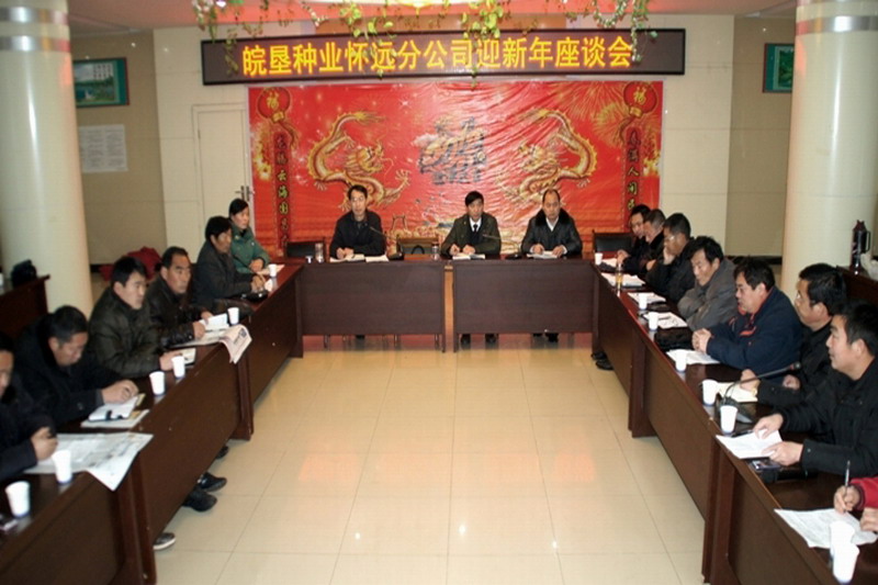 元月18日,皖垦种业怀远分公司举行迎新年座谈会。皖垦食品集团董事长、分公司经理王国福,龙亢农场场长杨俊宇,食品集团副总经理、分公司副经理程希文出席会议。分公司全体员工和龙亢农场农业经营公司、各农业分场负责人参加了座谈。