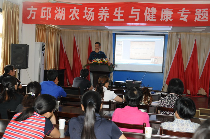 为丰富职工群众的精神文化生活,提高健康养生和自我保健意识,7月14日下午,方邱湖农场邀请蚌埠市养生专家宋祥来场举办养生与健康专题讲座,作为“以人为本、执政为民”主题教育系列活动内容之一。场管理人员、职工居民、退休老同志近60人到会听讲。
