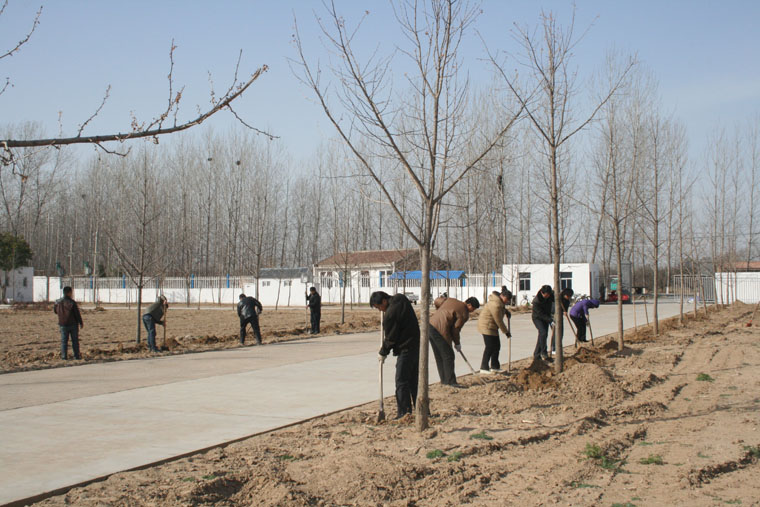 按照省农垦集团党委的要求,砀山果园场党委号召机关及各基层党支部深入开展创先争优主题实践活动。近期结合“绿化家园”创建活动,在皖垦果业有限公司院内道路两旁定植绿化葡萄苗。在两个多小时的义务劳动中,党员们发扬团队合作精神,在挖坑、定植、培土、扶正、绑捆各环节相互协作,共同完成了200株葡萄苗的定植任务。