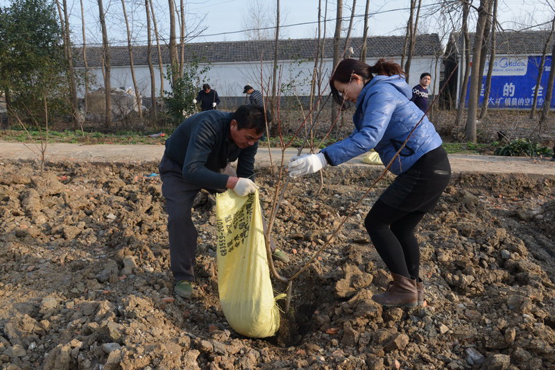 植树活动首先整治了场部西侧居民楼旁两片空闲地。领受任务后,大家立即清运石块杂物,领苗、挖坑、扶苗、填土、踩实……,环环相扣、井然有序,干劲十足、热火朝天。转眼之间,两片空闲地上覆盖了一排排整齐的树苗,大家脸上露出了满意的笑容。此次绿化家园活动,共清运石块杂物18车、栽植桃树230余棵,为农场增添了新绿、美化了环境。(王菲)