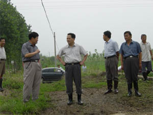 + 丁俊先一行在农场领导徐成银、李家华、沈永辉、 施广庆、李斌等同志的陪同下,实地查看了农场在 地作物的受灾情况,徒步检查了农场东风电力排灌 站的排涝情况,并亲临高邮湖大堤,了解水情汛 情。检查过程中,丁俊先同志对农场在面临特大暴 雨袭击时,迅速组织力量,投入防汛排涝,各项工 作紧张有序给予了充分肯定。并听取了场主要领导 徐成银、李家华等同志对农场上半年工作总体情况 的汇报。