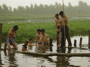 自7月3日正式投入防汛以来,一分场干群已经连续 奋战了10天。这期间,大家风里来,雨里去,水里 泡,泥里滚,人人都感到异常疲劳,却没有一个人 叫苦叫累。当得知西线吃紧时,大家二话没说,又 振奋精神,趟着泥水及时赶到抢险地段。