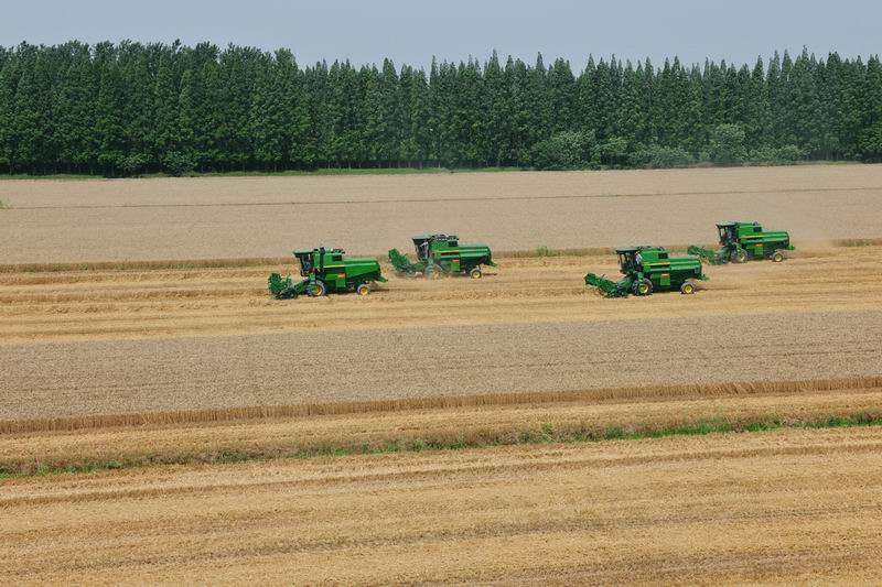 当前“三夏”生产进入高潮,全国小麦机收正由南向北快速推进。为确保粮食颗粒归仓,日前,安徽农垦抢收保种,全系统已投入大型联合收割机械、拖拉机等农机具5000台套。图为寿西湖农场农机会战现场。(经济日报