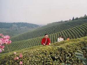 安徽农垦皖南茶区5万亩优质茶园近日开园采摘新茶。 图为图为采茶姑娘正在敬亭山茶场生态茶园里采茶。