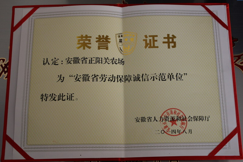 正阳关农场:获评全省劳动保障诚信示范单位