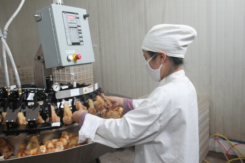 断喙器又名切嘴机、切嘴器。此次引进的红外线段喙器,目前全国仅有少数较大家禽企业运用。红外线断喙在孵化厅进行,与性别鉴定和免疫注射同步完成,通过精确微调,每小时可处理3500-4000只苗鸡,自动化率达100%,避免了员工与苗鸡的接触,确保了生物安全性,使之成为安禽公司实现饲养全程自动化控制后又一新亮点,“安禽”牌苗鸡步入了全国同行业一线品牌,将带动农场蛋鸡产业链进入更加良性的可持续发展模式。