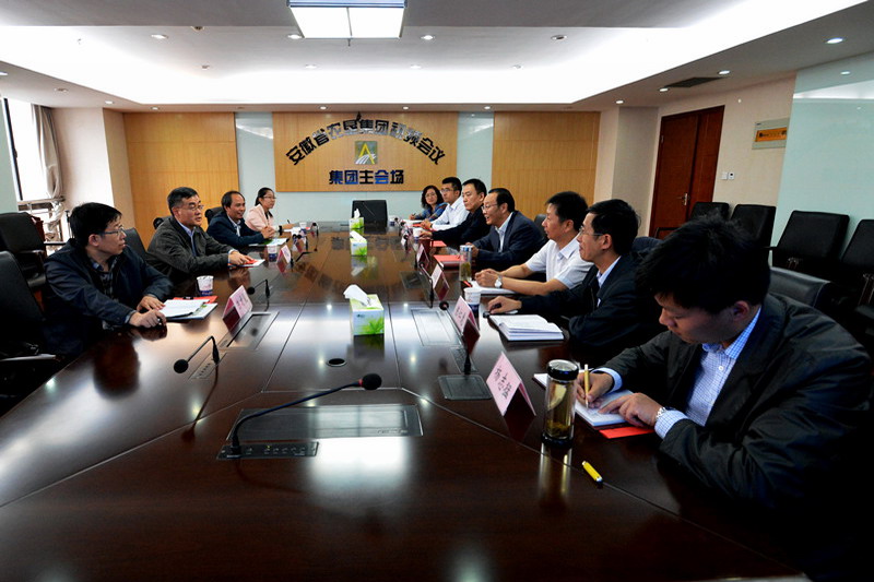 周富华一行观看了安徽农垦及“走出去”工作专题宣传片,听取了安徽农垦及皖垦种业改革发展、“走出去”战略及皖津项目、垦地合作项目及园区建设等情况介绍。周富华代表中农发集团表达了愿与安徽农垦在种业、化肥、农药、现代农业、农业“走出去”等多领域携手合作的积极愿望,并邀请安徽农垦赴中农发集团进行考察交流。