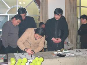场长、党委书记刘国强感谢书画家们给农场送来了 丰厚的精神食粮,他相信通过举办形式多样的文娱 活动,能够拉近彼此距离,密切方方面面的关系。 在一天的慰问活动中,书画家们围绕农场经济发展 这一主题,共创作书画作品共40余幅。