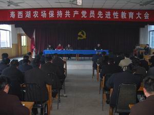 寿县县委先教活动第一督导组副组长汪正群讲了 话。他说,省属寿西湖农场是全县85个首批参学单 位,农场具有自身特点,开展先教活动难度大,但 农场领导高度重视,党员密切配合,工作开展有 序,规模大。总结为:一是及时传达学习了县委2月 4日全县先进性教育动员大会精神;二是根据省农垦 集团公司和寿县县委先教活动安排结合场情制订了 切实可行的方案,具有较强操作性;三是成立了组 织,使先教活动有专人负责;四是召开了“三 会”,即党委会、中层干部会和党支部书记会议; 五是开展了一次比赛活动,分三天组织全场职工进 行拔河比赛,密切党群、干群关系,加强了团结, 消除了隔阂;六是开展了党课教育活动。总之,先 教活动已在全场全面展开并向纵深发展。 (张文权)