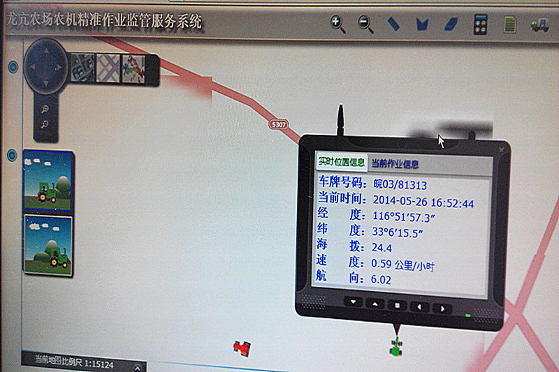 2014年,安徽龙亢农场农业部农业物联网区域试验工程——大田生产物联网技术应用示范区,与中科院智能研究所、北京农业智能装备技术研究中心等科研院所合作共建了农机精准作业监管服务系统,探索农机作业信息化管理。日前,9台(C110、C230)大马力收割机和6台(KAT1504)大马力拖拉机的农机终端和软件系统安装联调、运行测试工作全面建设完成并投入使用。