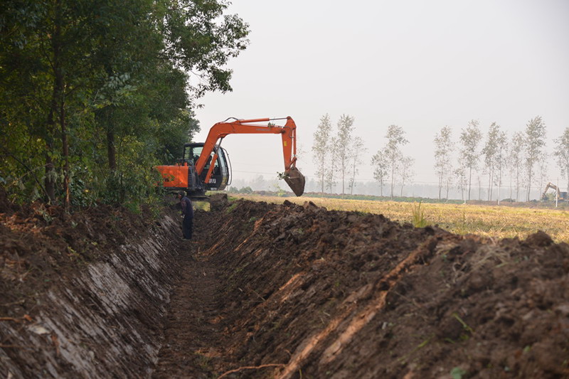 在秋收秋种繁忙之际,安徽农垦大圹圩农场统筹安排,一手抓“双抢”,一手抓项目建设,当前正在实施由天长市国土局为农场报批的高标准基本农田建设项目示范工程。