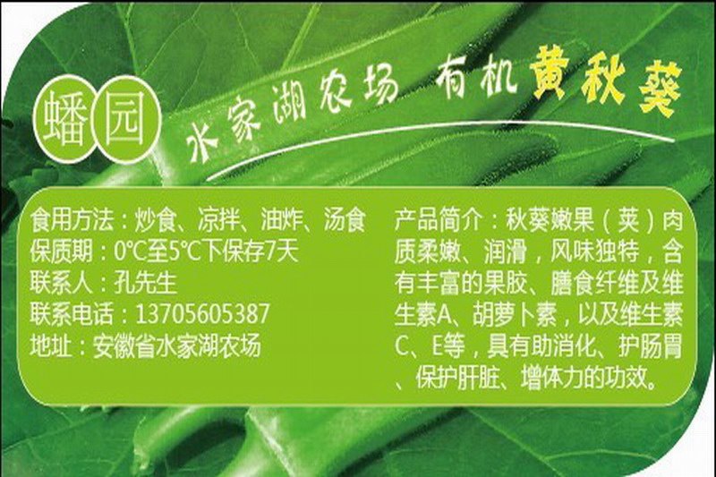 为拓宽市场销路,“金满地”合作社对秋葵进行包装,申请注册了“蟠园牌”水家湖农场有机黄秋葵商标。孔令筛告诉笔者:“第一次试吃,我就认定这种蔬菜必有好收益,于是大胆购买了种子,今年5月份种上了3亩。”