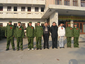 在9日下午的欢送会上,韩大鸣场长向新入伍青年 提出了殷切的期望。韩场长指出:经过各级组织层 层挑选,我场7名青年即将走进军营,成为光荣的 中国人民解放军战士,场党委对此表示热烈的祝 贺。韩场长代表场党委希望新参军的同志在部队安 心服役,苦练保家卫国本领,为军旗添采,为家乡 父老增光。各位家长更要发挥军属在农场改革和发 展中的模范带动作用,为农场各项建设做出应有的 贡献。7名新战士在会上表示:一定不辜负领导和 家人的期望,在部队安心服役,服从命令听指挥, 全面提升自身政治和业务素质,树立农场青年的良 好形象,争取早日立功受奖,为农场争光,为亲人 争光。场武装部和新兵所在单位的领导以及军属代 表也在欢送会上作了发言。图为会议结束后,韩大 鸣场长(右四)兴致勃勃地与新战士合影留念。 (杨登宏)