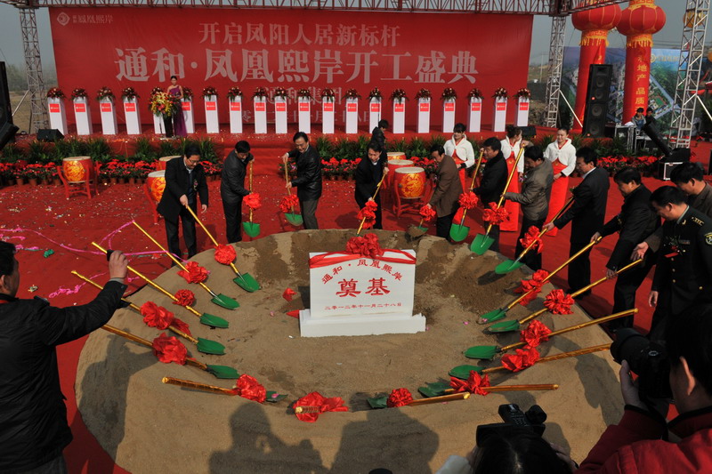 开工仪式上,程军在致辞中说,位于方邱湖农场的垦地合作通和·凤凰熙岸房地产项目开工建设,是省农垦集团和凤阳县委县政府抓住我省加快皖北振兴和美好乡村建设战略机遇,积极推进垦地战略合作的又一重要成果。程军要求,建设施工及监理单位要加强沟通协调,严把质量关,按照工期加快建设进度,努力打造“路在绿中、楼在园中、人在景中”的“一水两岸”住宅小区精品工程。米德成代表凤阳县委县政府在致辞中对项目如期开工给予高度评价,他说,凤凰熙岸项目建设将极大改善凤阳城区面貌和品位,助推凤阳县域房地产业加快发展。米德成要求,县直相关部门要提高服务意识,大力支持项目建设,营造良好的外部环境;建设各方要全力保证工程质量,力争项目早日建成。