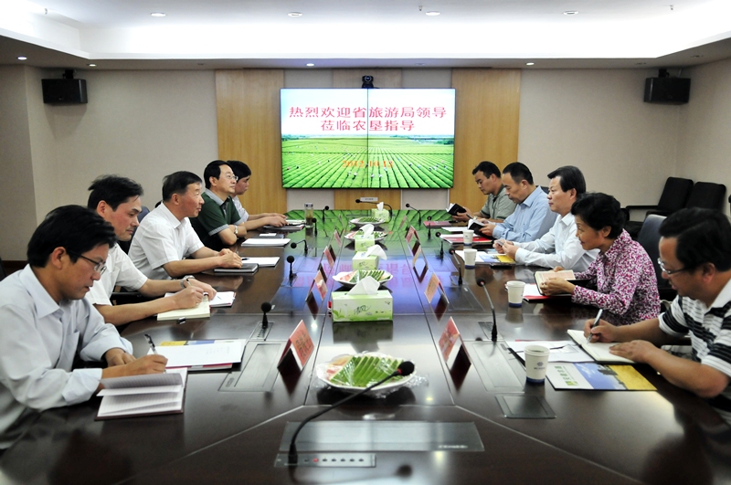 洽谈中,田文俊介绍了安徽农垦发展概况、现代农业建设、垦地合作开发、潜在的旅游资源等情况,表示农垦要将观光休闲农业与旅游工作结合起来,挖掘旅游资源潜力,拓展现代农业功能。刘超分析了农垦旅游业发展的有利条件、打造“农场乐”旅游试点项目的初步构想,提出了将农垦纳入全省旅游业发展规划、加强工作指导和项目资金支持、创新农垦旅游发展新机制等意见和建议。水家湖农场场长刘国强汇报了“蝶恋花”草莓采摘一日游的情况。与会人员观看了《打造现代农业企业集团》电视宣传片。