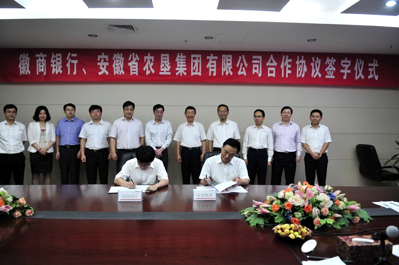 为扩大农垦对外开放,进一步加强银企合作,9月26日,安徽农垦集团与徽商银行签署战略合作协议。徽商银行成立于2005年12月28日,是全国首家由城市商业银行和城市信用社联合重组设立的区域性股份制银行,总部设在安徽合肥。截至今年上半年,徽商银行拥有机构网点180个,员工4800多人,注册资本达81.75亿元。