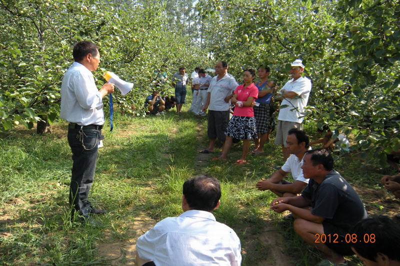 皖垦果业有限公司统营示范园由于生产管理到位、病虫控制到位,目前酥梨品相好,座果率高,丰收在望。8月8日,该场深化“科技年活动”,组织在示范园开展了果树病虫害统防统治技术观摩培训会,本场果树专家详细讲解了当前病虫发生情况、发展趋势和无公害防治、生物防治、物理防治、安全生产等技术,场生产部门、单位管理技术人员和承租大户共85人参训。通过观摩培训活动,力求进一步提升质量追溯建设水平,确保全场果品质量安全,促进增产增收。(魏晓清 张贵胜)