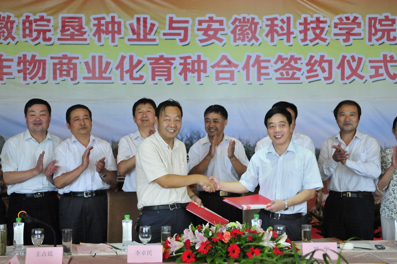 此次皖垦种业与安徽科技学院合作意义重大、内容丰富、形式灵活。一是创新合作体制, 初步组建了安徽皖垦生物工程研究院玉米课题组,整合我省高校玉米育种团队资源,并有序地向企业流动、为企业发展服务;二是创新合作机制,实行双考核和双激励,皖垦种业、安徽科技学院分别实施玉米育种团队的年度考核,对业绩突出的团队成员,安徽科技学院给予优先晋职晋级,皖垦种业给予表彰奖励;三是开创皖垦种业玉米育种的先河,确立了三大作物育繁推一体化发展的战略布局。