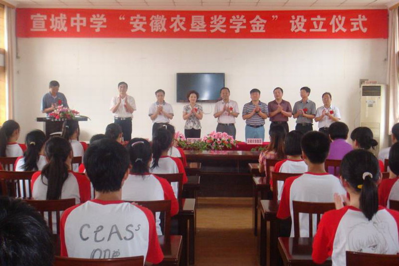仪式上,李卓民在致辞中指出,自2007年省农垦集团与宣城市政府合作启动敬亭山茶场山南土地开发以来,垦地合作新举迭出、成就斐然,山南地区面貌焕然一新,职工生产生活条件明显改善,加快了皖南垦区“新三化”进程,促进了宣城城市建设与发展。他说,为报答和回馈宣城市民,我们选择捐资助学,在宣城中学设立 “安徽农垦奖学金”,包括“未来之星奖”和“优秀园丁奖”。前者奖励资助家庭贫困、品学兼优的学生,帮助这些莘莘学子顺利完成学业,成为国家的有用之才;后者褒奖激励在宣城中学教书育人、辛勤奉献的优秀园丁们。韩永生在致辞中对农垦善举给予赞扬并表示感谢,她希望垦地合作事业继续向更广、更深、更远方向发展,要求宣城中学管好用好“安徽农垦奖学金”,发挥其扶困、助学、激励等作用,以感谢农垦和回报社会,促进宣城教育事业更好更快发展。(汤雷)
